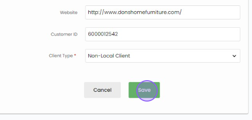 After choosing the non-local client type, click the 'Save' button to confirm your selection. This step is pivotal as it ensures that the recommendation engine factors in the distinctive aspect of the client being situated beyond a local market