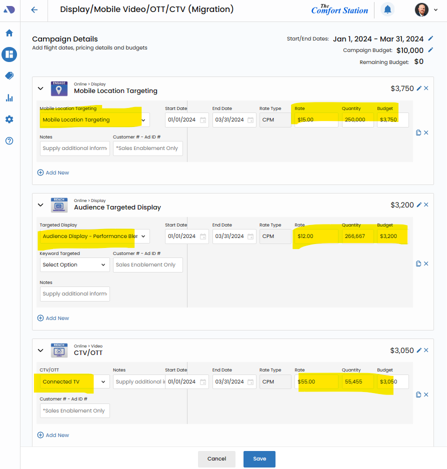Ensure that your migrated campaign has the correct products, and the correct budgets for each migrated tactic.