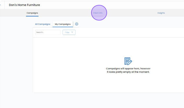 Navigate to the client information tab located at the top of the client page. This is the starting point for making adjustments tailored to non-local clients.